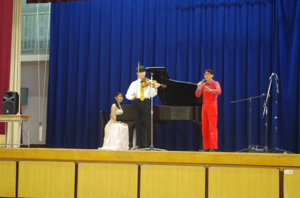 10月14日(火)に、音楽企画LARGOさんによる芸術鑑賞会が開かれ、ピアノ、バイオリン、ギターの演奏、様々な曲の演奏やパフォーマンスを披露していただきました。