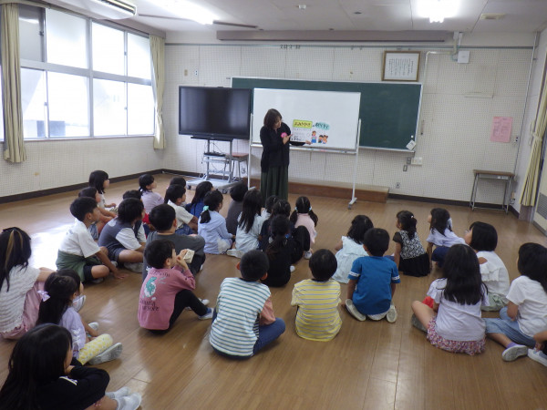 今回、読み聞かせの前に、話を聞くときの約束を確認していただきました。