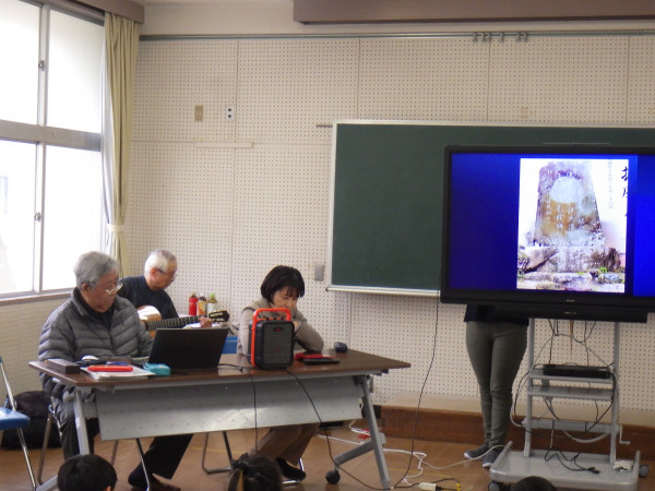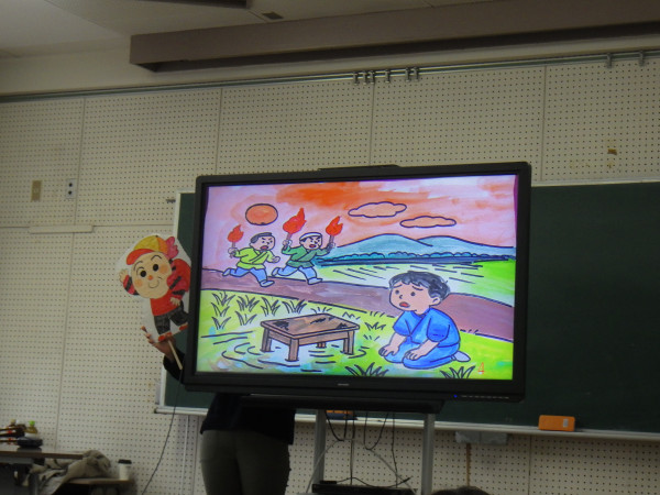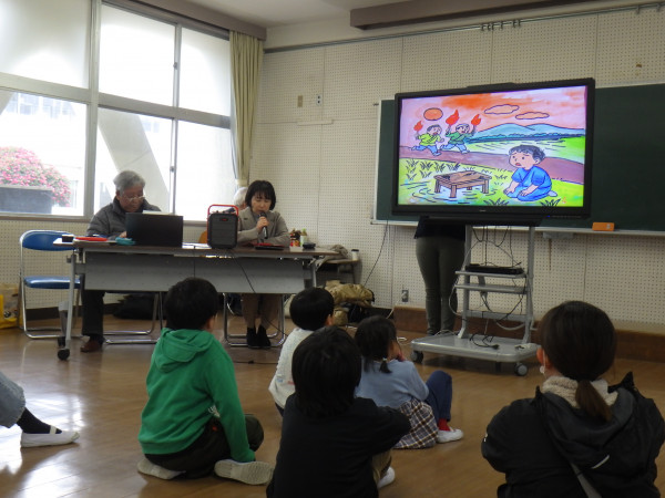 1月30日の昼休みに、「やとみ紙芝居の会」の皆さんによる、デジタル紙芝居の上映がありました。