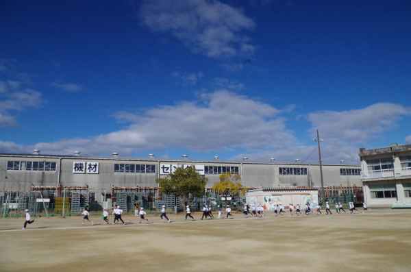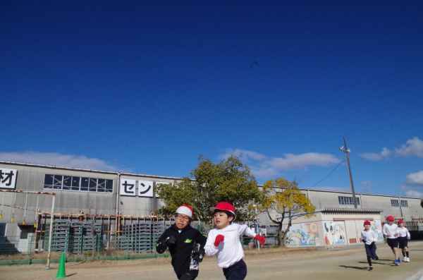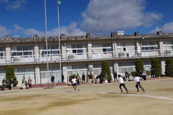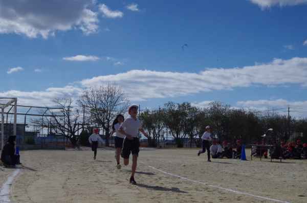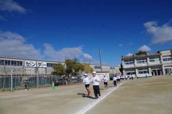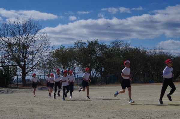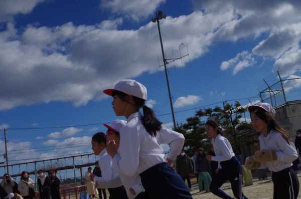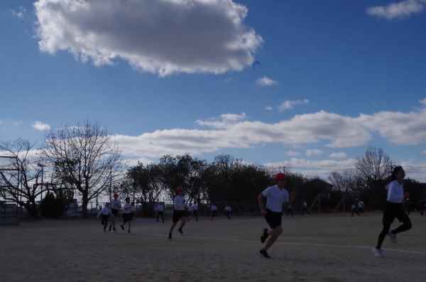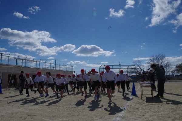 2月3日、青空のもとで持久走記録会が行われました。