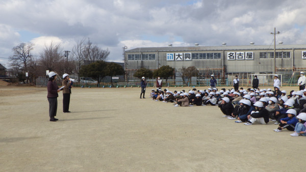 今回は、児童だけでなく授業を行っている教員にも訓練実施の時間を事前に知らされない状況での訓練でしたが、一次避難、二次避難ともに指示をしっかり聞き、落ち着いて行動することができました。