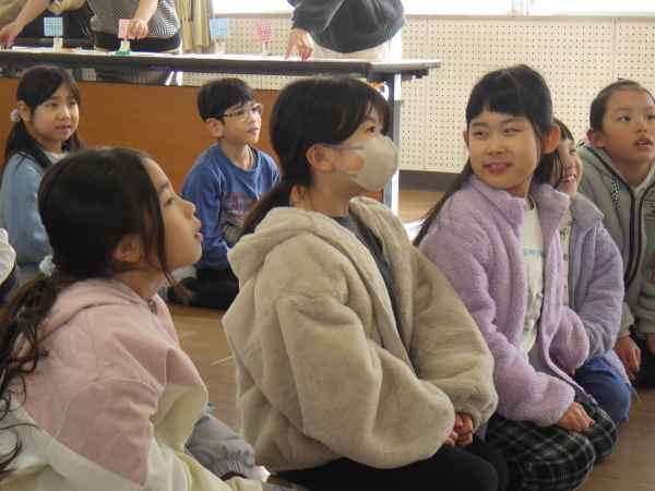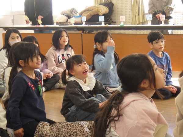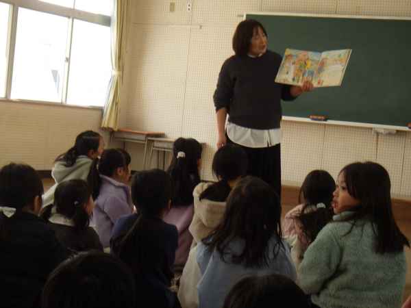 この日の午前中には、持久走記録会が行われたので、がんばって走り終えた子どもたちは、読み聞かせでほっと一息つくことができました。節分の日にちなみ、選ばれた本も「鬼のサラリーマン」というお話で、お話の面白さに子どもたちの笑顔と笑いに包まれたひとときになりました。子どもたちに楽しい時間をありがとうございました!