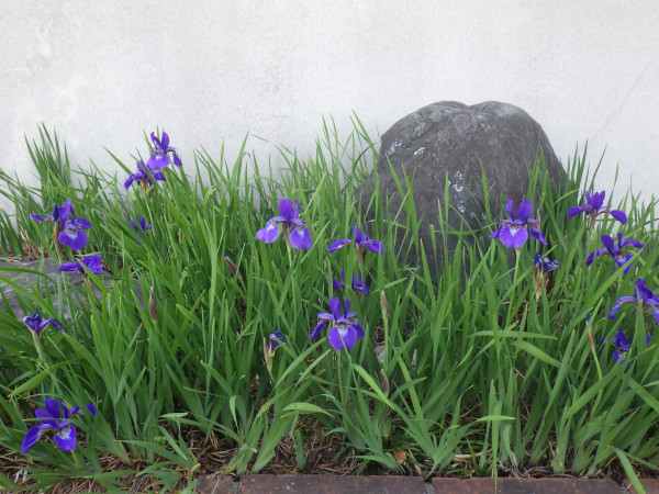 来賓玄関前のアヤメがきれいな花を咲かせました。