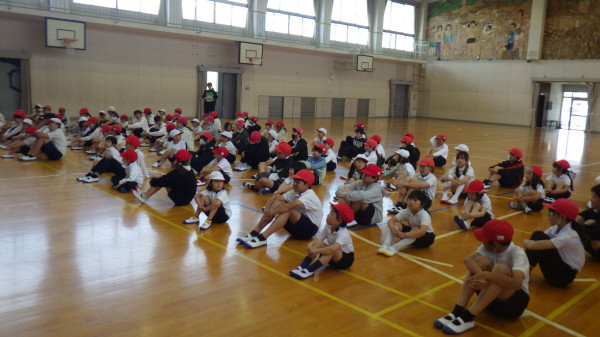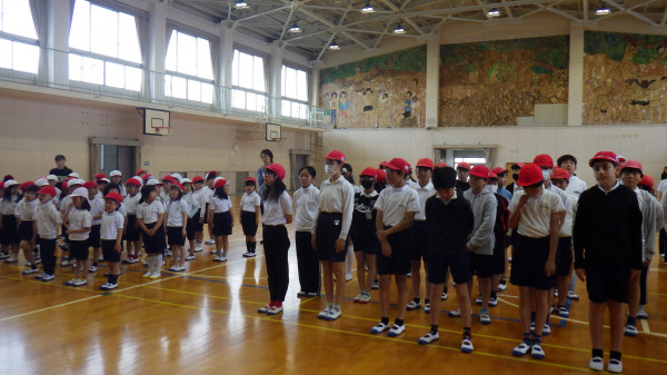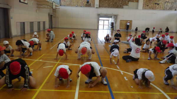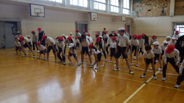 運動会の全校種目でも実施する大切な運動であり、6年生は動きのポイントを分かりやすく伝えようと、優しく声をかけながら丁寧に教えていました。1年生も6年生の話をよく聞き、楽しみながら一生懸命に取り組む姿が見られました。回数を重ねるごとに動きもそろい、少しずつ自信をもって取り組めるようになってきました。