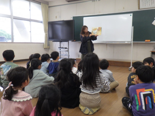 昼休みの時間、カルボラの皆さんによる本の読み聞かせがありました。