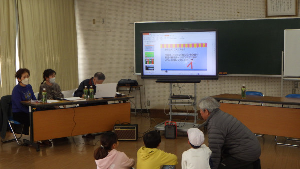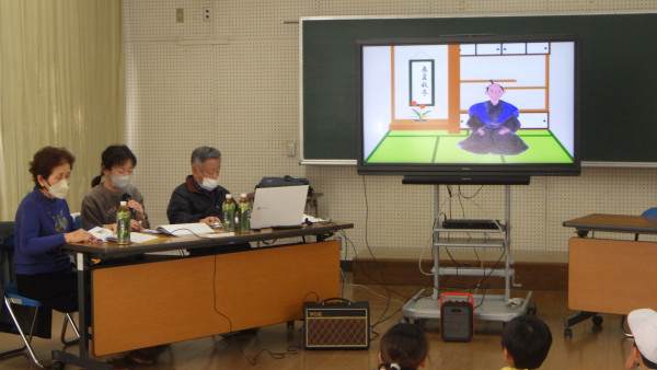 11月28日(金)の昼休みの時間、白鳥子ども応援団(カルボラ)の皆さんにデジタル紙芝居を上映していただきました。今回は、弥富の民話をお聞きしました。