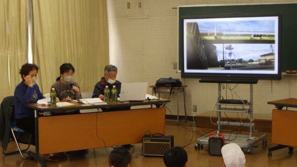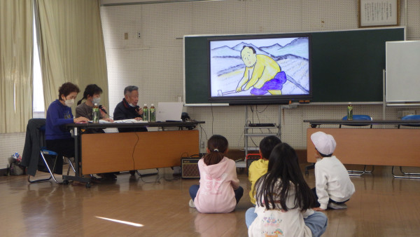 「十四山」という地名にまつわるお話は、読み手の皆さんの臨場感溢れる台詞回しと効果音、デジタル紙芝居の映像に心引き込まれました。お話の最後には、悲しい展開に胸が詰まりました。
