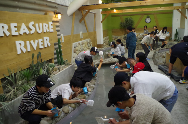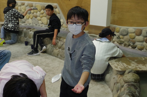 また、昼食後に遊具を使って遊んだり、ストーントレジャーも体験しました。理科で地層について学習してきているので、様々な天然石があることを学び、種類や説明書きなどを友達と楽しそうに伝え合う姿もありました。