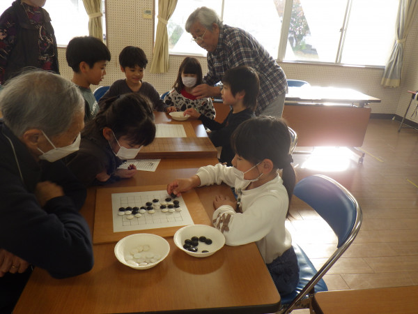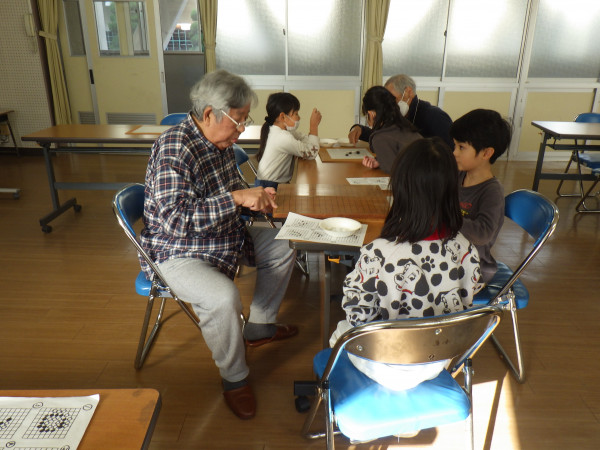 囲碁教室では、囲碁の先生と対局したり、その様子をじっと見て自分だったらどうするか考えたりして、一人一人が囲碁に親しんでいました。