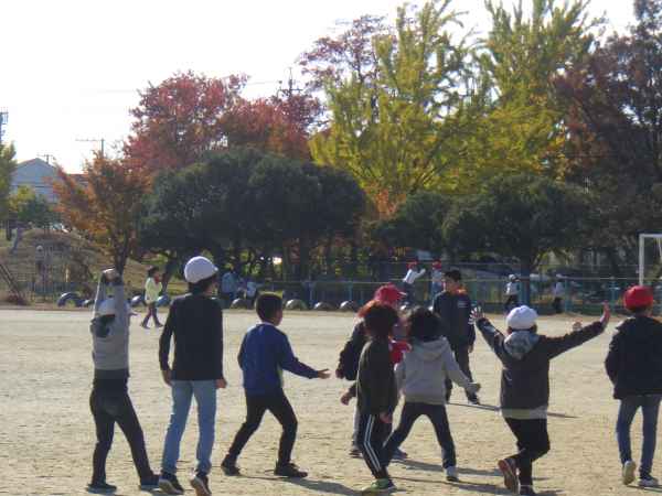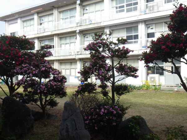 白鳥小学校では、秋には校庭の木々の葉が赤や黄色に色づき、見る人の目を楽しませてくれます。そして秋が終わると、色とりどりの木々の葉のかわりにこんどは中庭の山茶花(さざんか)がきれいな花を咲かせてくれます。童謡「たきび」の2番の歌詞にも出てきますね。