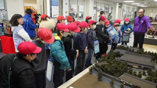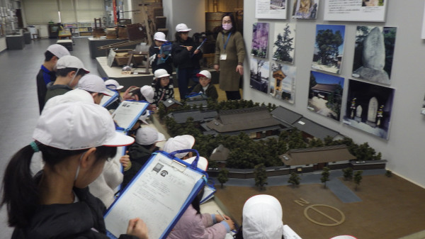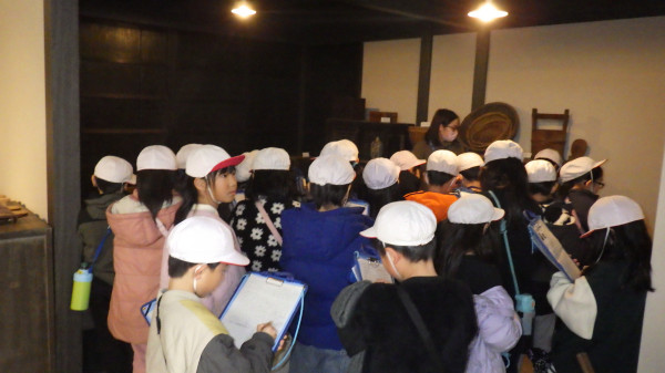 2月12日、社会科で学んできた「うつりかわる市とくらし」のまとめとして、弥富市歴史民俗資料館を見学しました。昔の道具の説明や、伊勢湾台風の被害など、資料館の方の説明をよく聞いて、質問したりメモをとったりしていました。