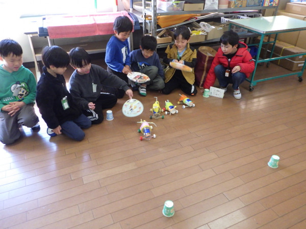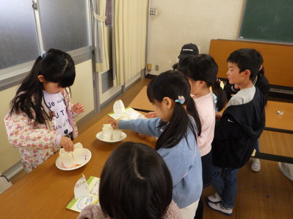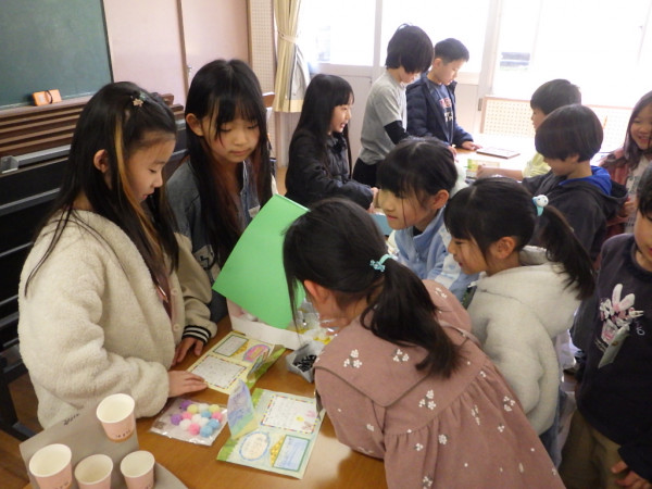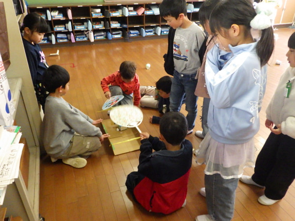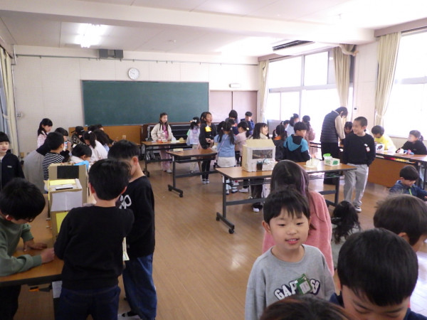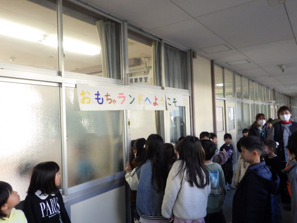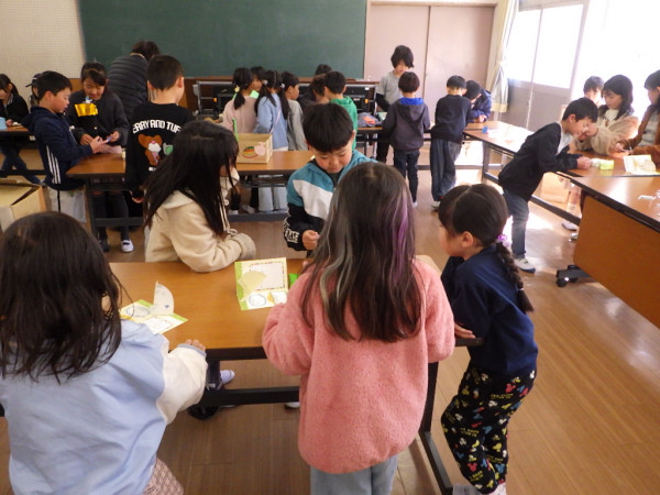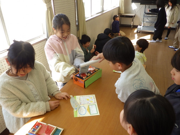 2年生はこれまで、生活科「せかいでひとつ わたしのおもちゃ」の学習で、身の回りの材料を使ったおもちゃ作りを進めてきました。本日、完成したおもちゃを持ち寄って作ったおもちゃランドに、1年生を招待しました。上級生らしく、優しい言葉で説明しながら、1年生と関わることができました。1年生からは、「もっと遊びたい!」「色々なおもちゃがあって面白かった!」という言葉を聞くことができました。2年生一人一人の工夫がつまったおもちゃランドで、楽しい時間を共有することができました。